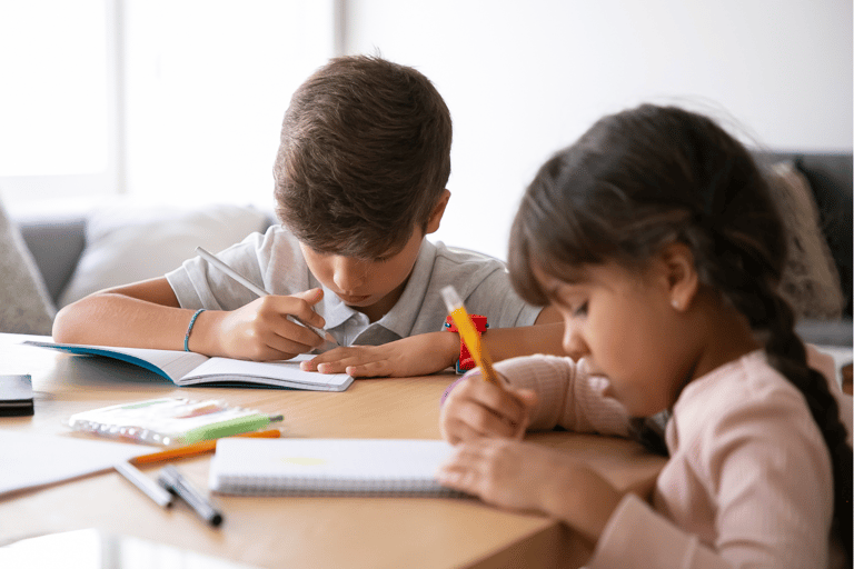Realizar las tareas escolares del día acompañados de profesoras que los guían y ayudan.