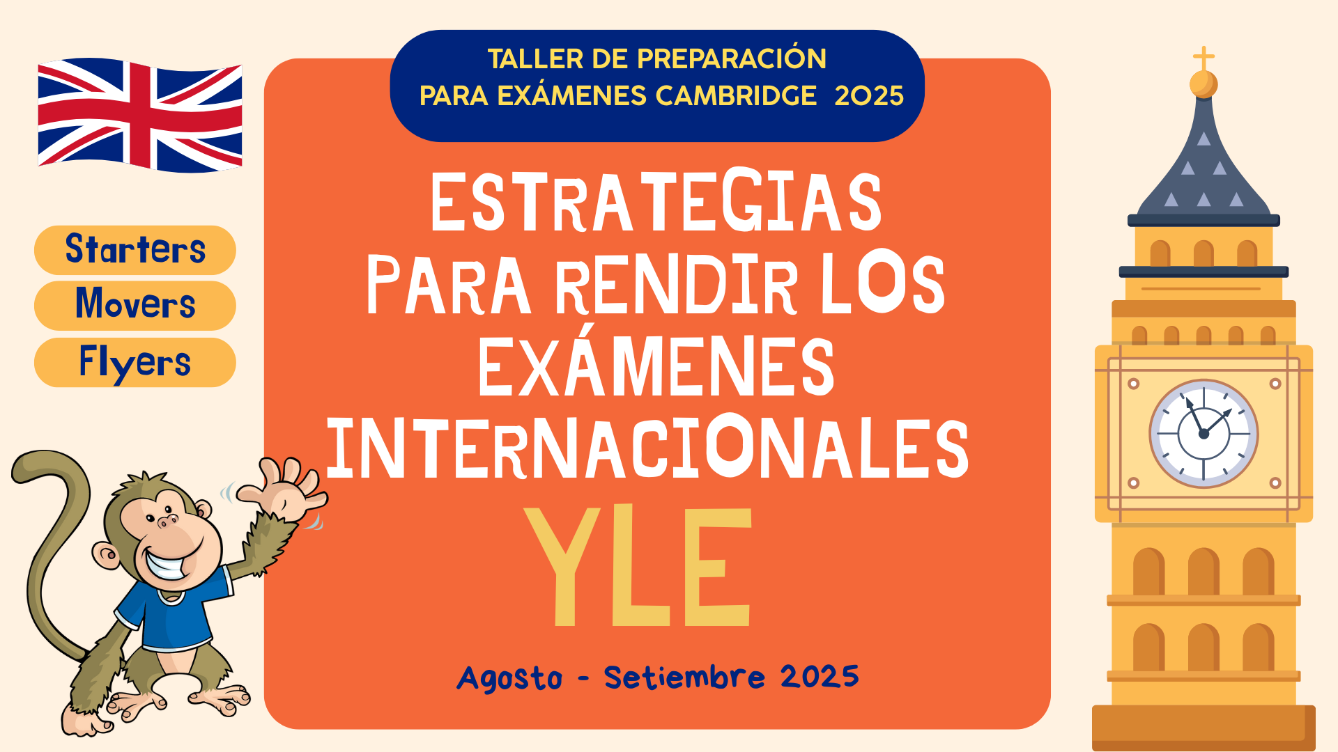 Los talleres de preparación a demanda STARTERS, MOVERS Y FLYERS (grupo mínimo de 4 niños por taller) se organizan previa comunicación telefónica al 900 006 767. Quedamos atentas.